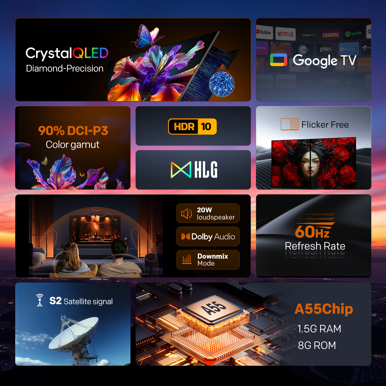 "copy": "Say goodbye to tangled cables and complicated setups. The TV features built-in Chromecast, allowing you to effortlessly cast your favourite photos, videos and apps directly from your phone to the big screen",