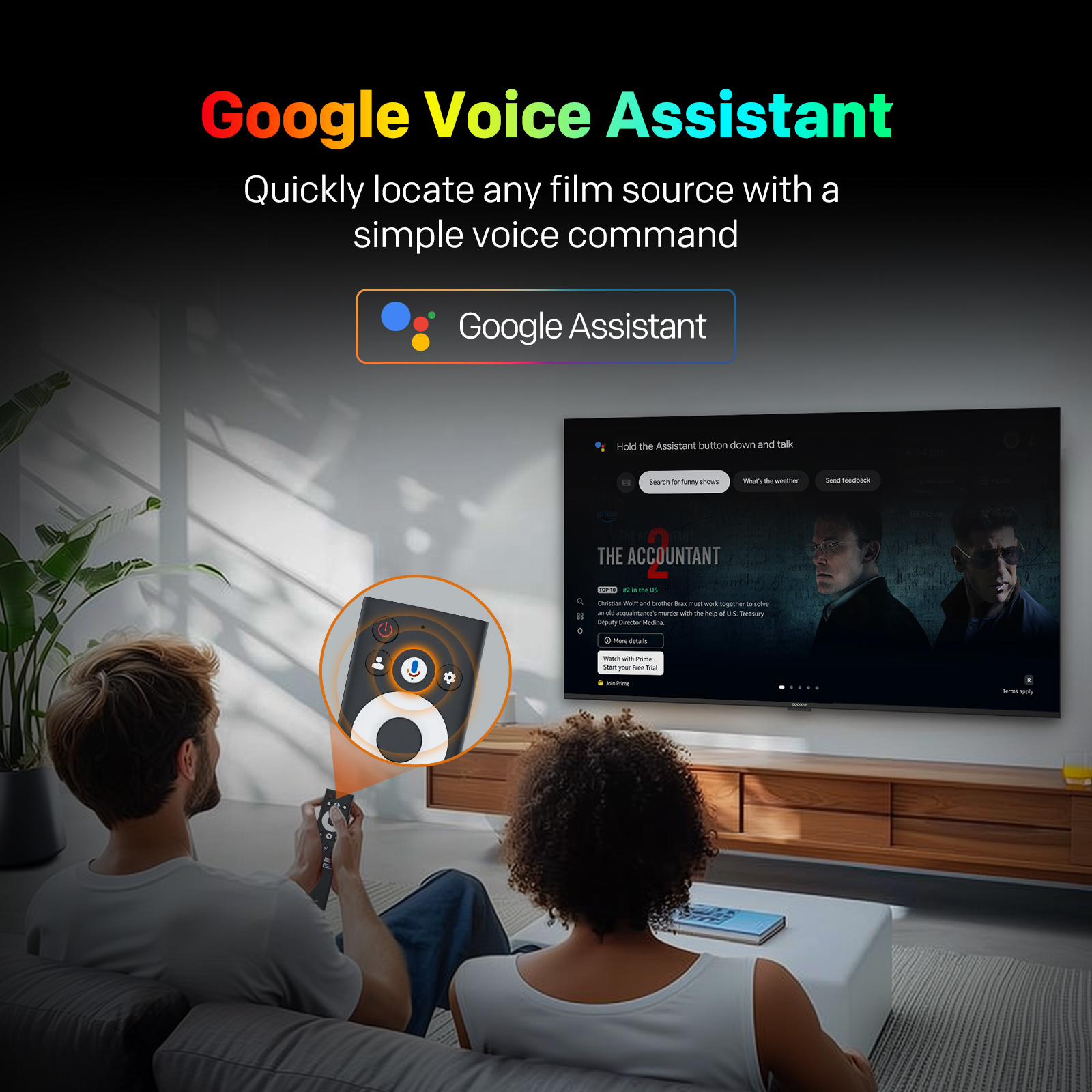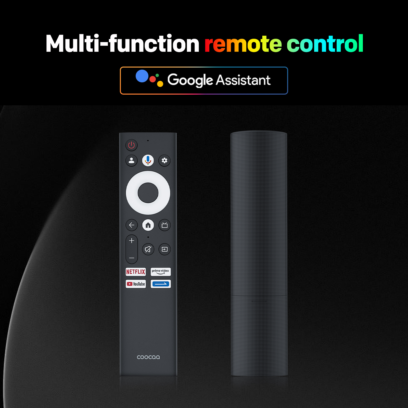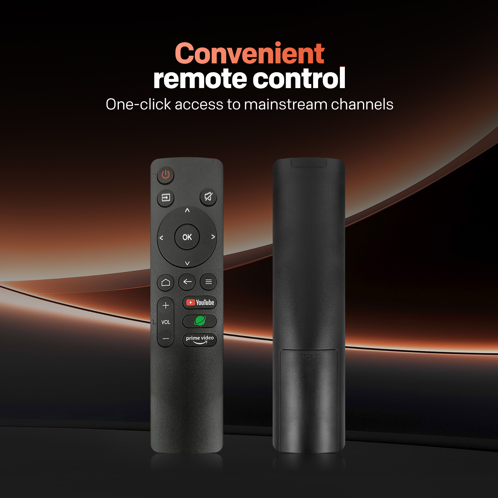 "copy": "The TV comes with a convenient remote control that gives you one-click access to your favorite mainstream channels, like YouTube and Prime Video. Now you can jump straight to the content you love without the hassle of navigating through menus",