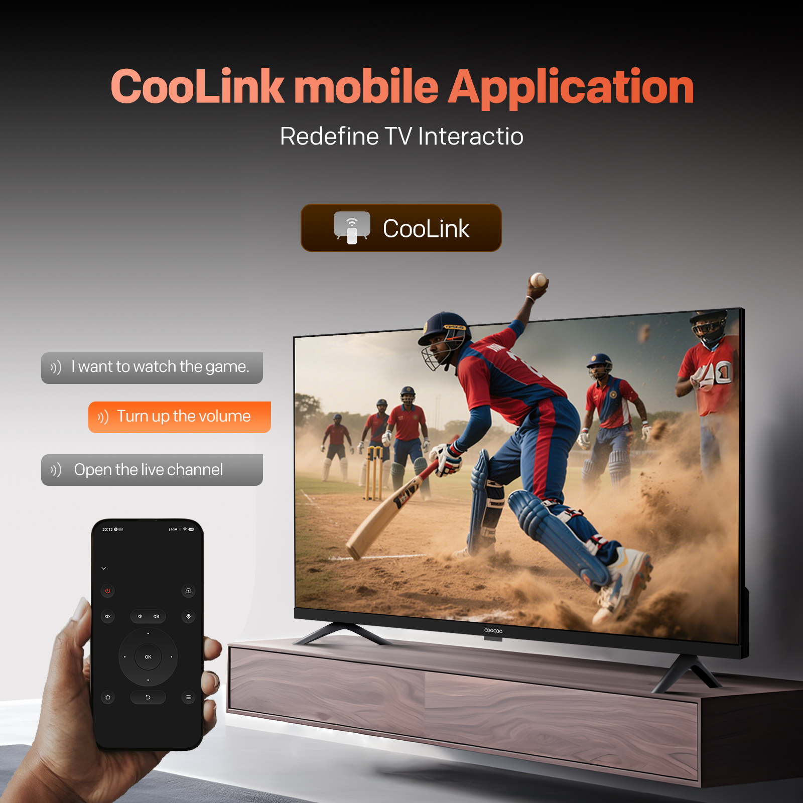"copy": "Take control with the Coolink app—turn your smartphone into a smart remote and use voice commands for seamless, intuitive TV control.",
