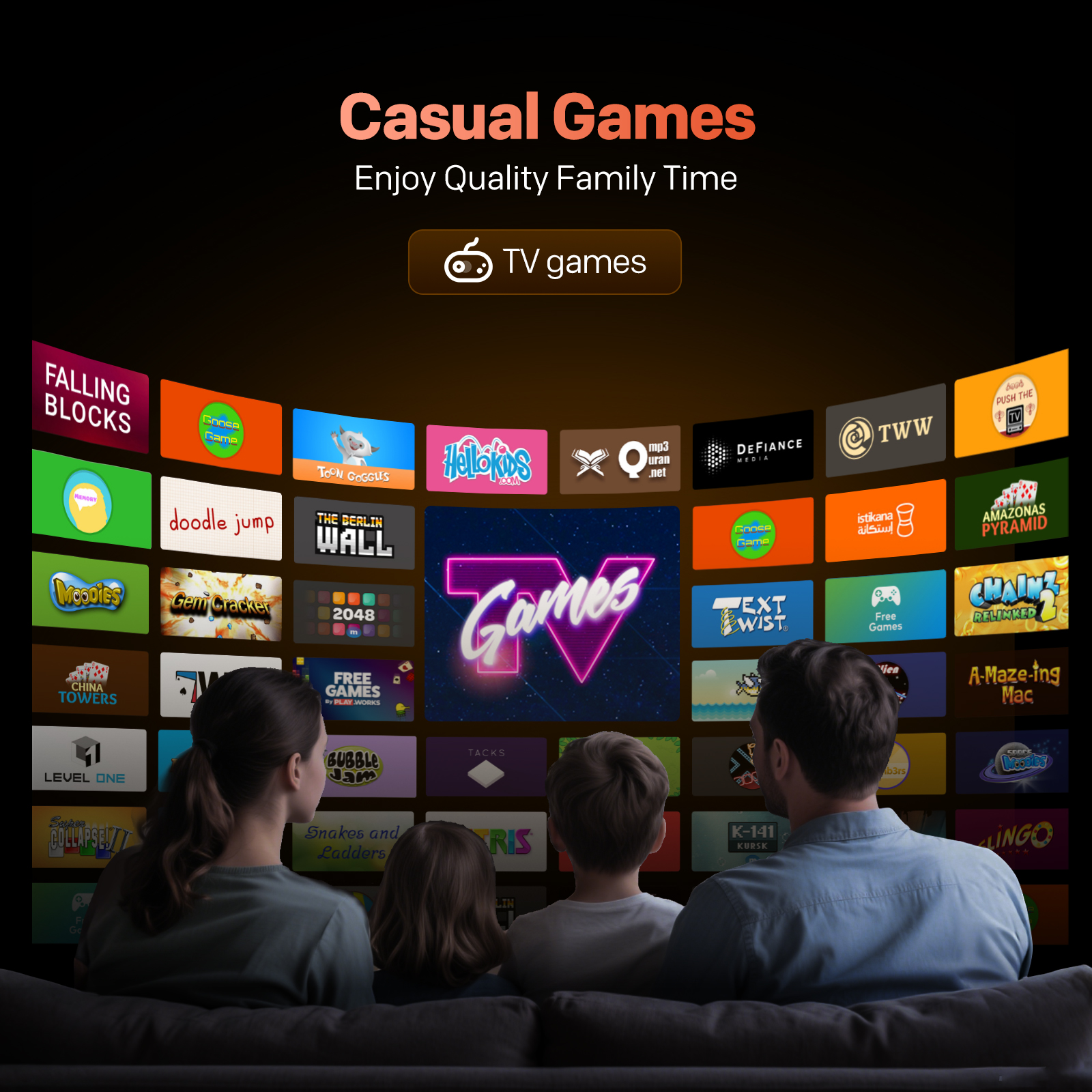 "copy": "Gather around for some quality family time! With a wide selection of built-in casual games, you can enjoy light-hearted fun right on the big screen. From classic puzzles to quick-play adventures, there's a game for every member of the family to enjoy",