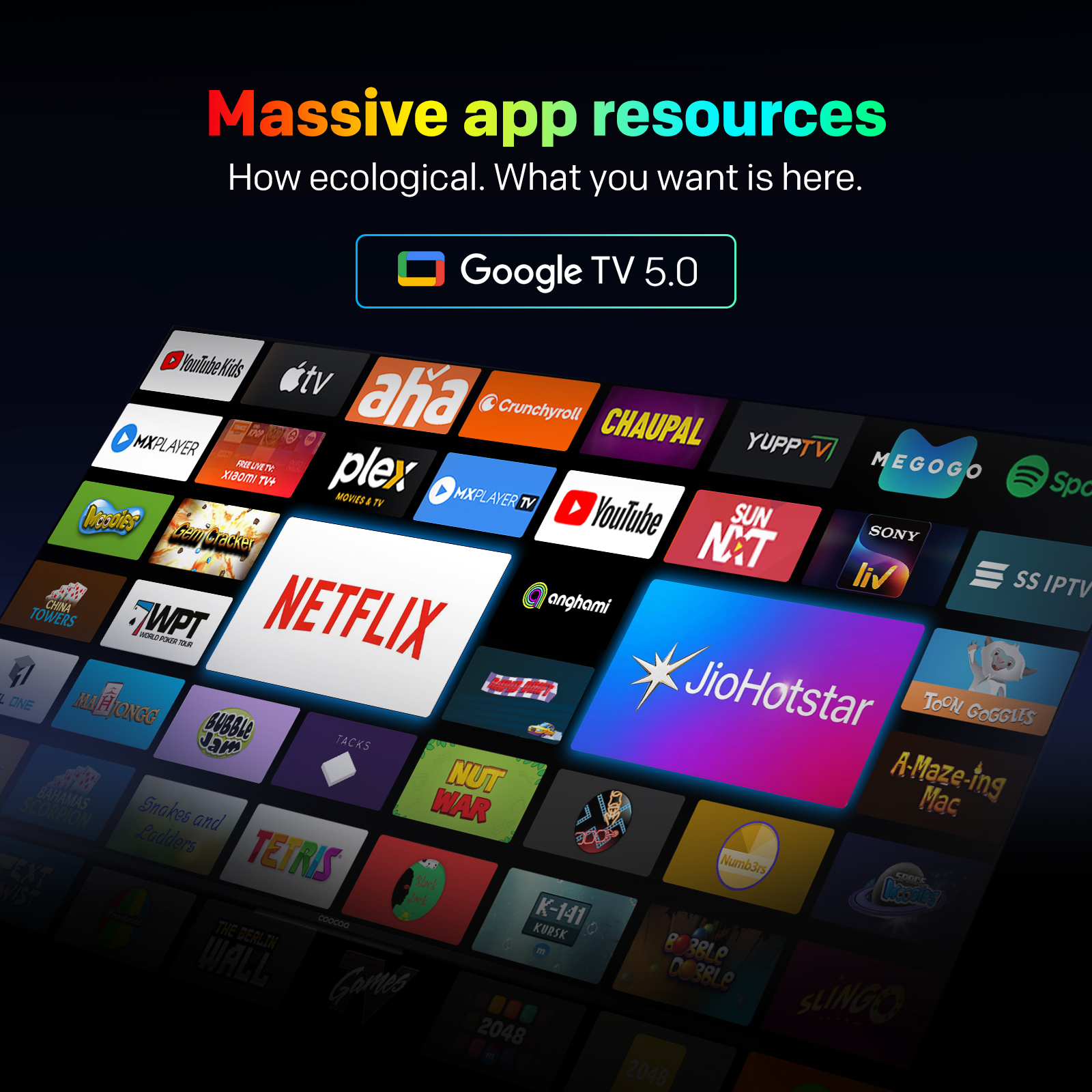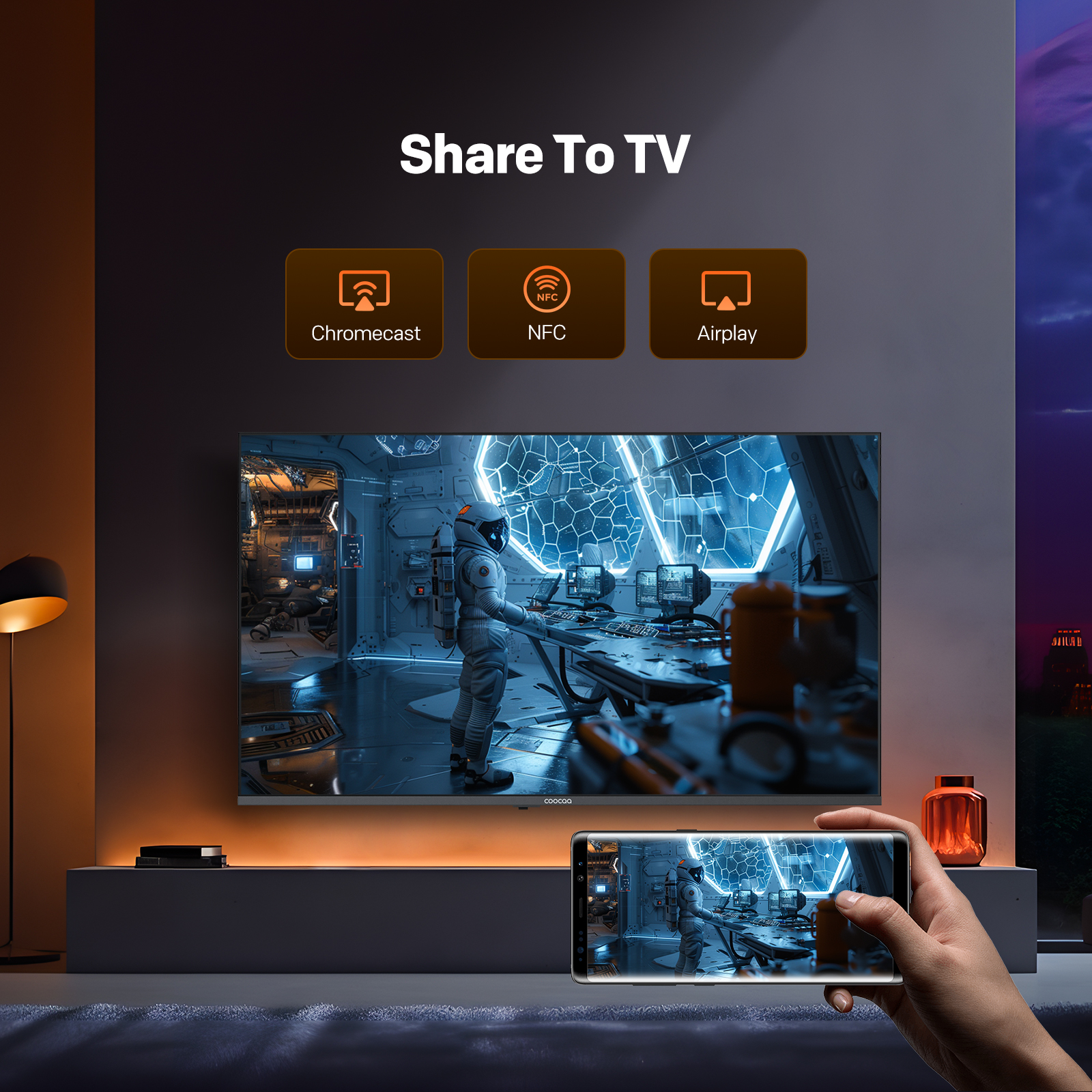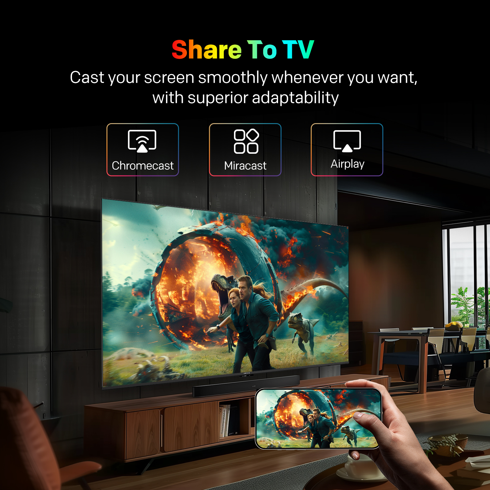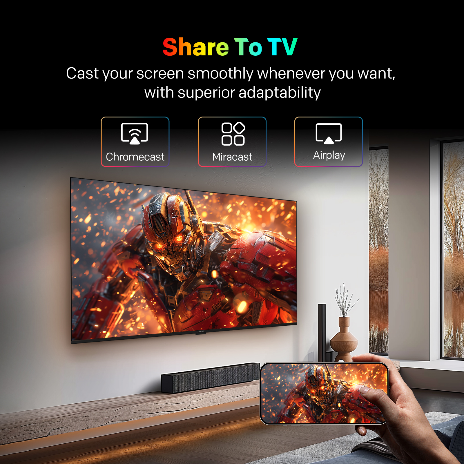 "copy": "Coocaa's CC Cast lets you effortlessly mirror content from your phone to your TV in a lightning-fast 0.5 seconds. Simply connect and enjoy your favourite shows, movies or games on the big screen without any hassle.",