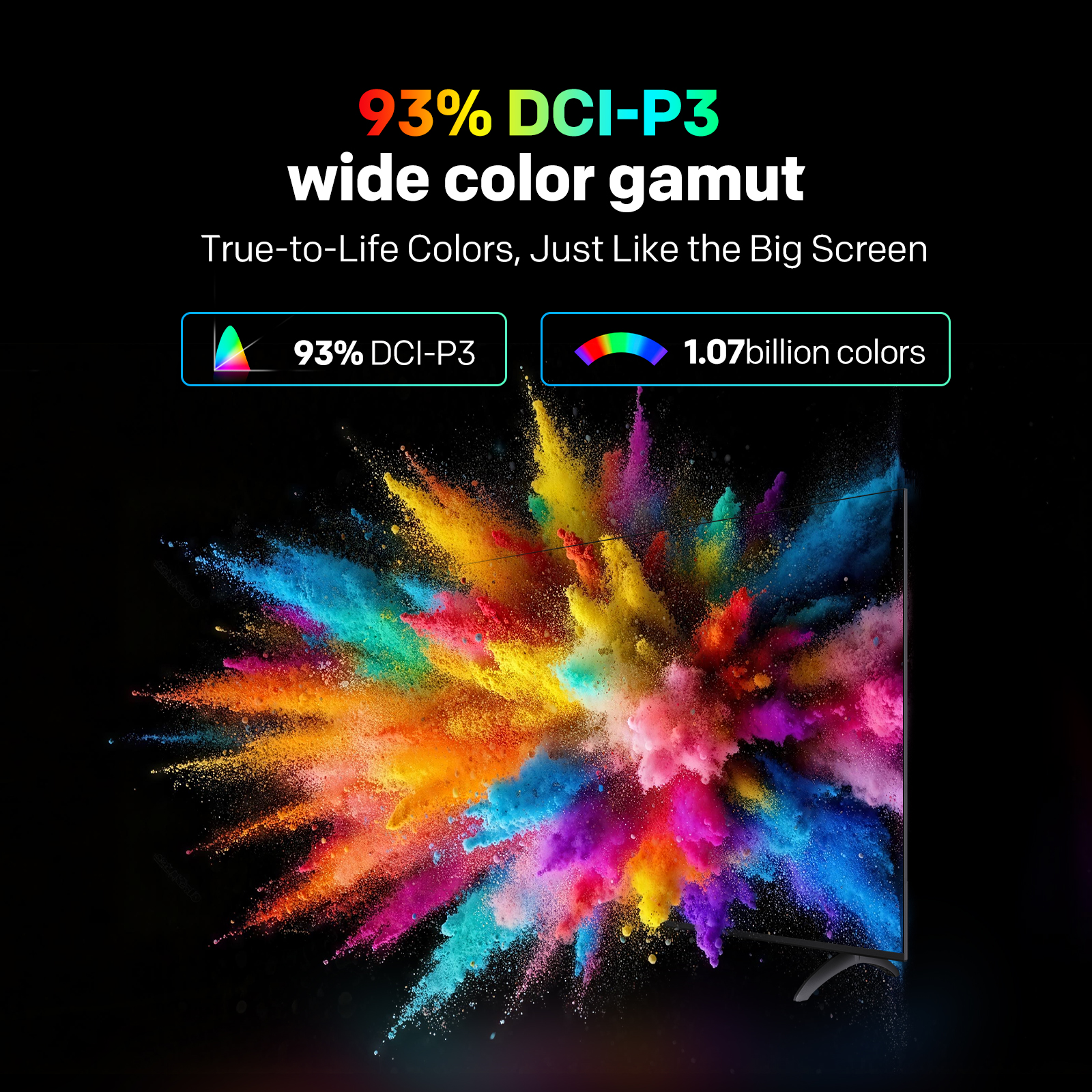 "copy": "Bring your content to life with 16.7 million hues. From vibrant reds to soothing greens, every frame bursts with rich, true-to-life color for an immersive viewing experience.",